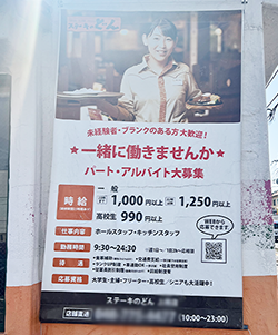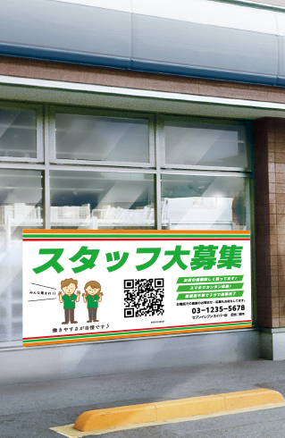 店外・店内に求人アイテムを配置して、多くの方に求人をアピールし、応募に繋げます。