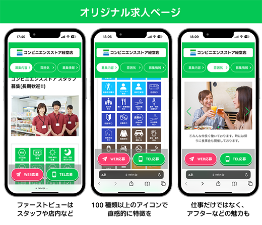 ネイバーでは、貴店専用の求人WEBサイトを作成する為、業界NO1の情報ボリュームを持ったWEBサイトを作成できます!