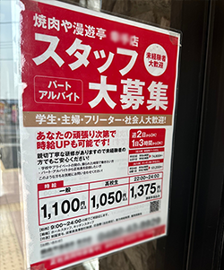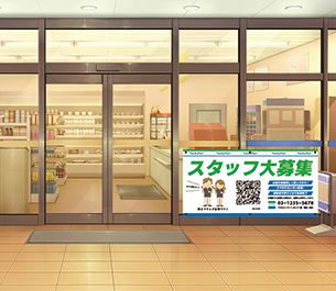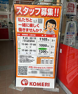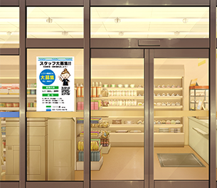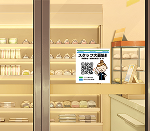 店外・店内に求人アイテムを配置して、多くの方に求人をアピールし、応募に繋げます。